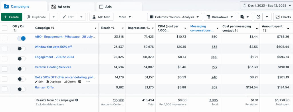 - Created goal-specific campaigns focused on WhatsApp Conversations