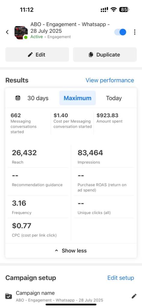 Whether you’re a startup or an established business, I can help you optimize your Meta ads, create high-performing content, and generate more WhatsApp leads — just like I did for that car detailing company.